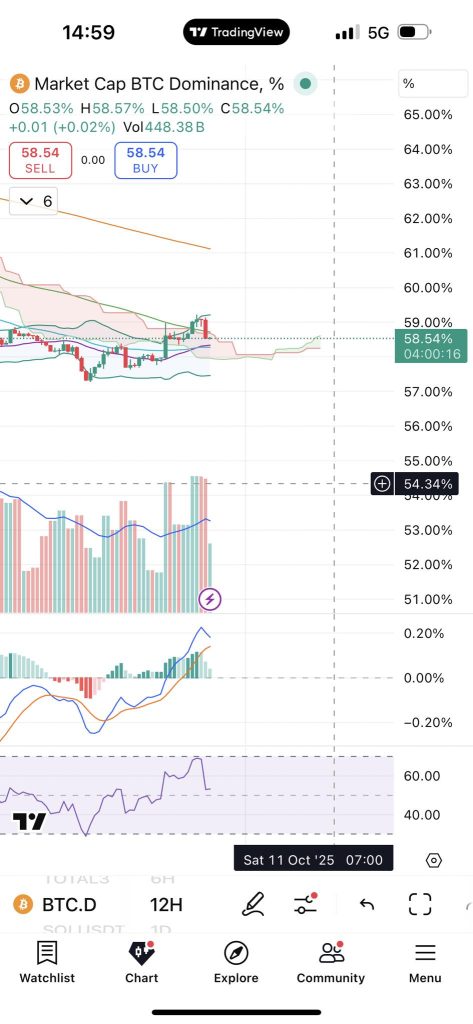 BTC.D là chỉ số thể hiện tỉ lệ % vốn hoá của BTC so với tổng thị trường.