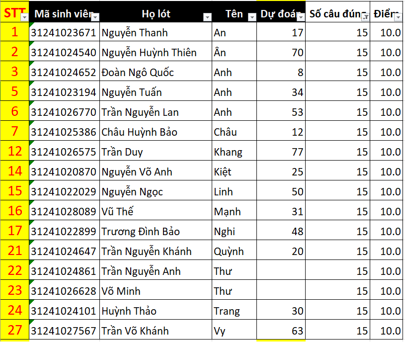 Xin được chúc mừng 36 bạn có điểm cao nhất của chương 04 và toàn thể các bạn sinh viên đã tham gia trải nghiệm vô cùng tuyệt vời