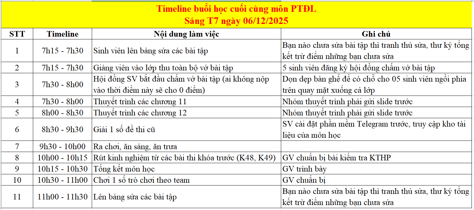 Timeline buổi học cuối cùng của học kỳ mùa đông môn Phân tích định lượng